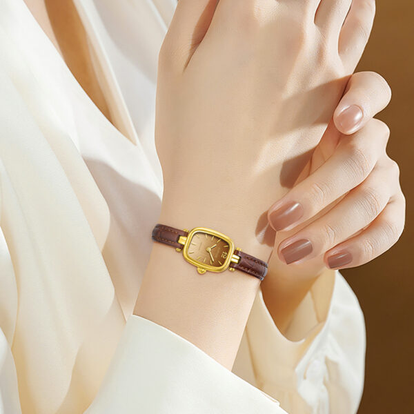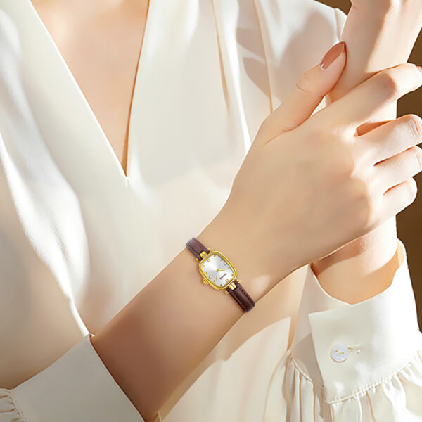 An elegant dress watch featuring 999 (24K) pure gold accents, a precise imported quartz movement, and a scratch-resistant sapphire crystal. Finished with a classic leather strap and 5 ATM water resistance, Model 879 (Gold Weight 0.9g+-) blends luxury style with reliable everyday wear.