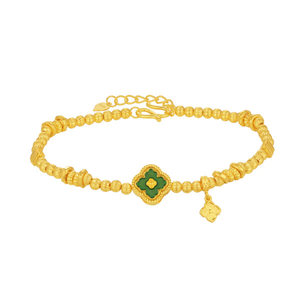 An elegant bracelet crafted with intricate guilloché detailing, symbolising joy, prosperity, and timeless refinement.